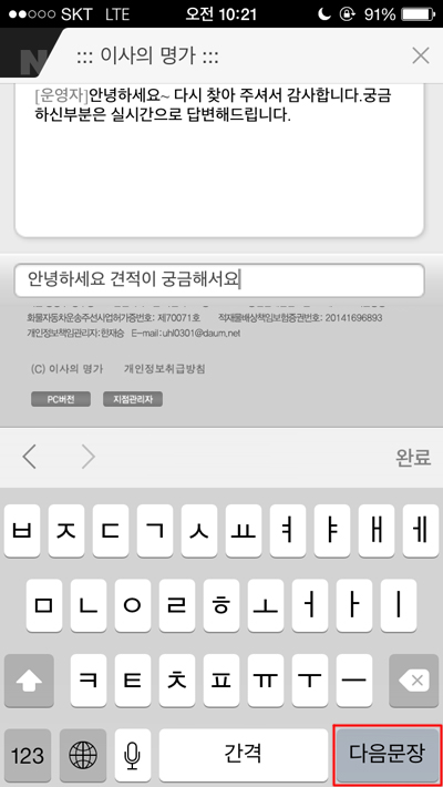 | ¾È³çÇϼ¼¿ä ÀÌ»çÀÇ¸í°¡ÀÔ´Ï´Ù. ÀüÈÅëȰ¡ ºÒÆíÇϽŠ°í°´´ÔµéÀÌ º¸´Ù ¼ö¿ùÇÏ°Ô »ó´ã¹ÞÀ¸½Ç ¼ö ÀÖµµ·Ï ȨÆäÀÌÁö ½Ç½Ã°£ äÆÃ īī¿ÀÅå »ó´ãÀ» ÁغñÇÏ¿´½À´Ï´Ù. ÀÌ¿ë¹æ¹ýÀº ´ÙÀ½°ú °°½À´Ï´Ù. äÆÃ : ȨÆäÀÌÁö Á¢¼Ó -> ¿ìÃø»ó´Ü(pc), ÇÏ´Ü(¸ð¹ÙÀÏ) äÆÃÄ¿¡ ¸Þ¼¼Áö ÀÔ·Â -> Àü¼Û īī¿ÀÅå: "ÀÌ»çÀÇ¸í°¡" °Ë»ö-> ¾ÆÀ̵ð Ä£±¸Ãß°¡ ¹× ¸Þ¼¼Áö Àü¼Û ¶Ç´Â http://goto.kakao.com/@ÀÌ»çÀÇ¸í°¡ īī¿ÀÅå ![]() ȨÆäÀÌÁö(pc) ![]() ȨÆäÀÌÁö(¸ð¹ÙÀÏ) ![]() °í°´ºÐµé²² ÆíÀǸ¦ Á¦°øÇϱâ À§ÇÔÀÌ¿À´Ï ¸¹Àº ÀÌ¿ë ¹Ù¶ó°Ú½À´Ï´Ù. °¨»çÇÕ´Ï´Ù. |